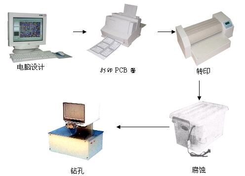 系統(tǒng)配置:計(jì)算機(jī)、激光打印機(jī)、轉(zhuǎn)印機(jī)、腐蝕桶、高速視頻鉆、轉(zhuǎn)印紙、合金鉆頭
